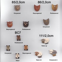 DIE KINDERKNOEPFE KOENNEN SIE IN DEN HOELZERN NACH FARBKARTE IN GREYWOOD/GRAUHOLZ, BAYONGWOOD/ZEDERNHOLZ,